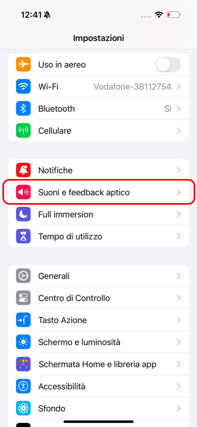 - Entrate in Impostazioni > Suoni e feedback aptico