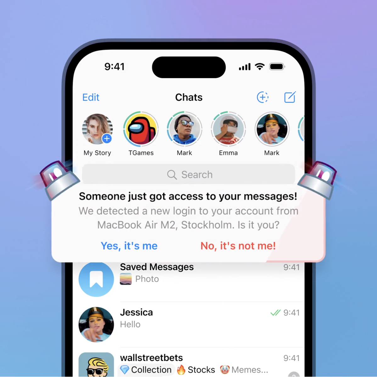 Ogni volta che qualcuno accede al tuo account, Telegram invia una notifica a tutti i tuoi dispositivi. Per rendere questa procedura ancora più evidente, i nuovi accessi ora mostrano questo avviso in cima alla lista chat.
