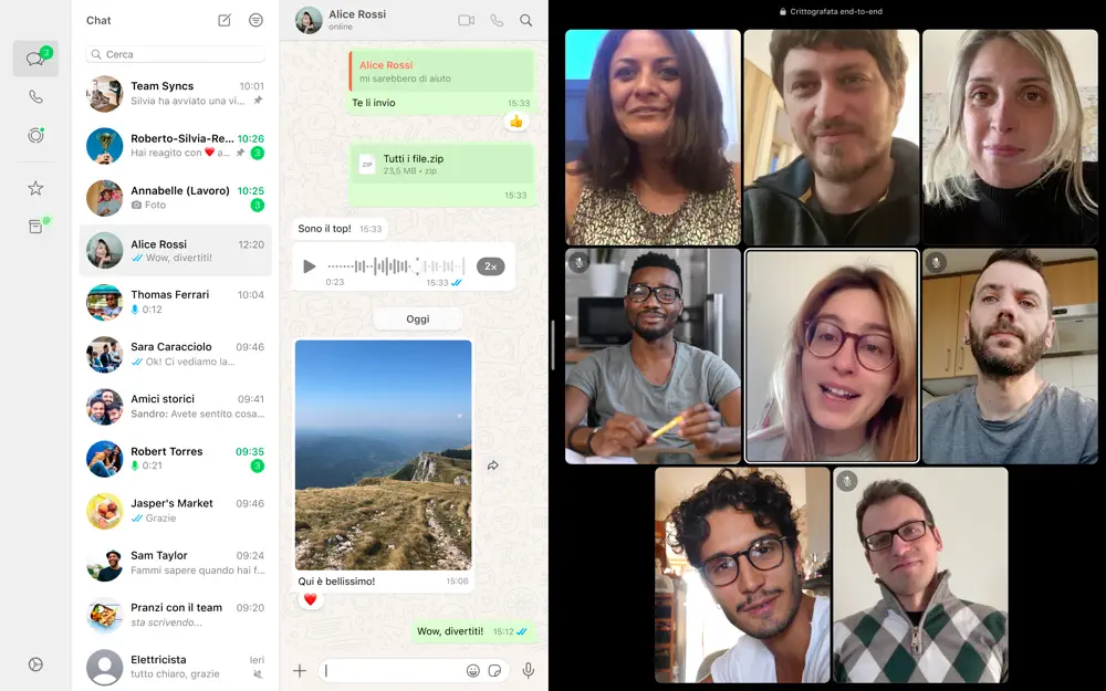 L’app appare completamente riprogettata sia nella grafica che nelle funzioni: offre infatti tutto quello che siamo in grado di fare su iOS, incluse le chiamate di gruppo e le videochiamate.