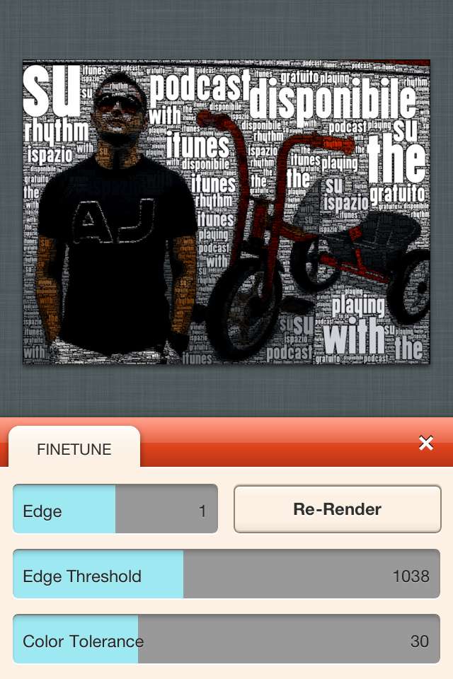 Eccovi l’immagine di Playing with the Rhythm, il mio nuovo Podcast musicale (disponibile gratuitamente su iTunes), modificata grazie a questa fantastica applicazione.