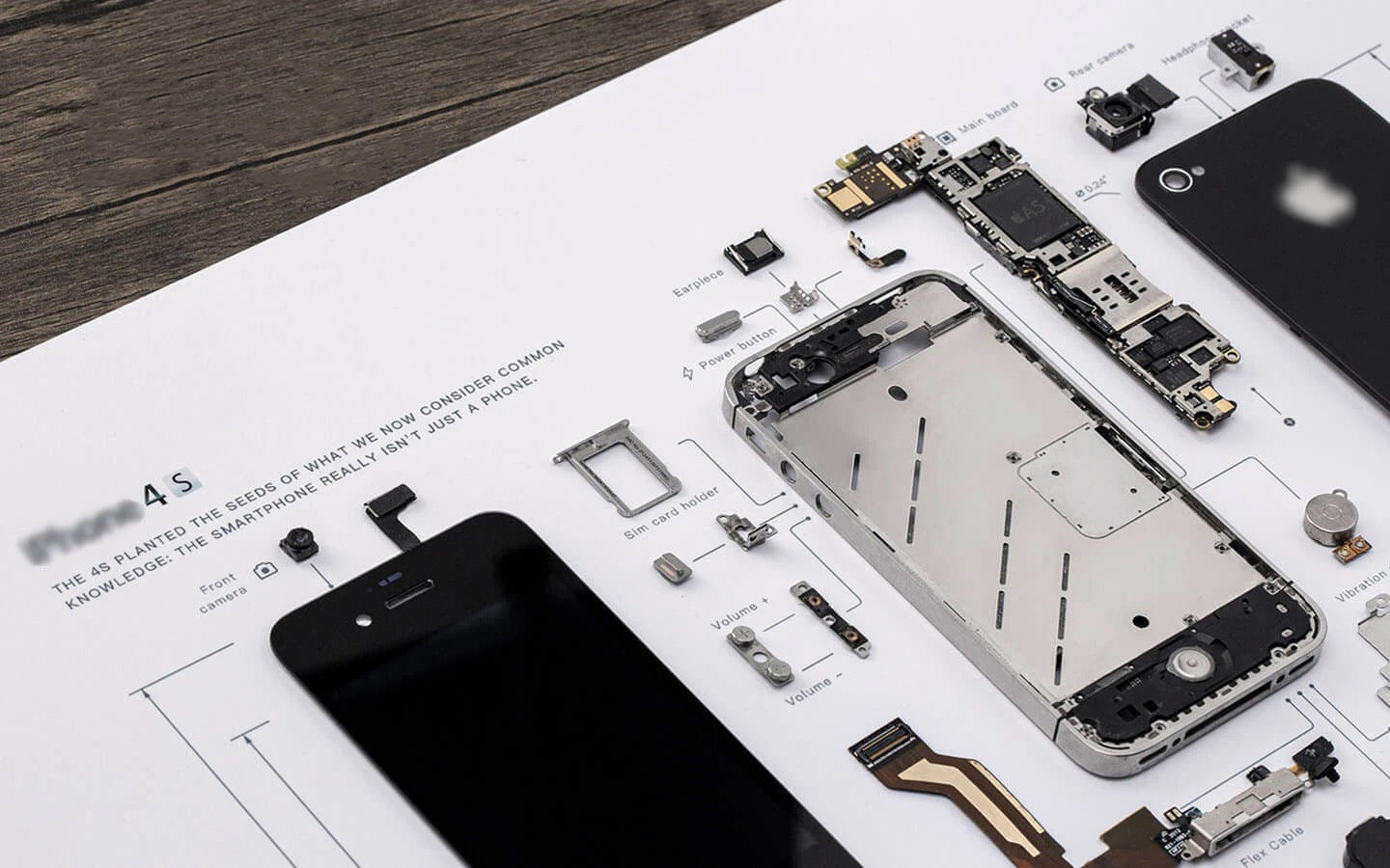 Si tratta di quadri speciali, realizzati smontando dei veri iPhone o altri dispositivi Apple che vengono poi incollati su un fondo bianco che descrive ogni componente.