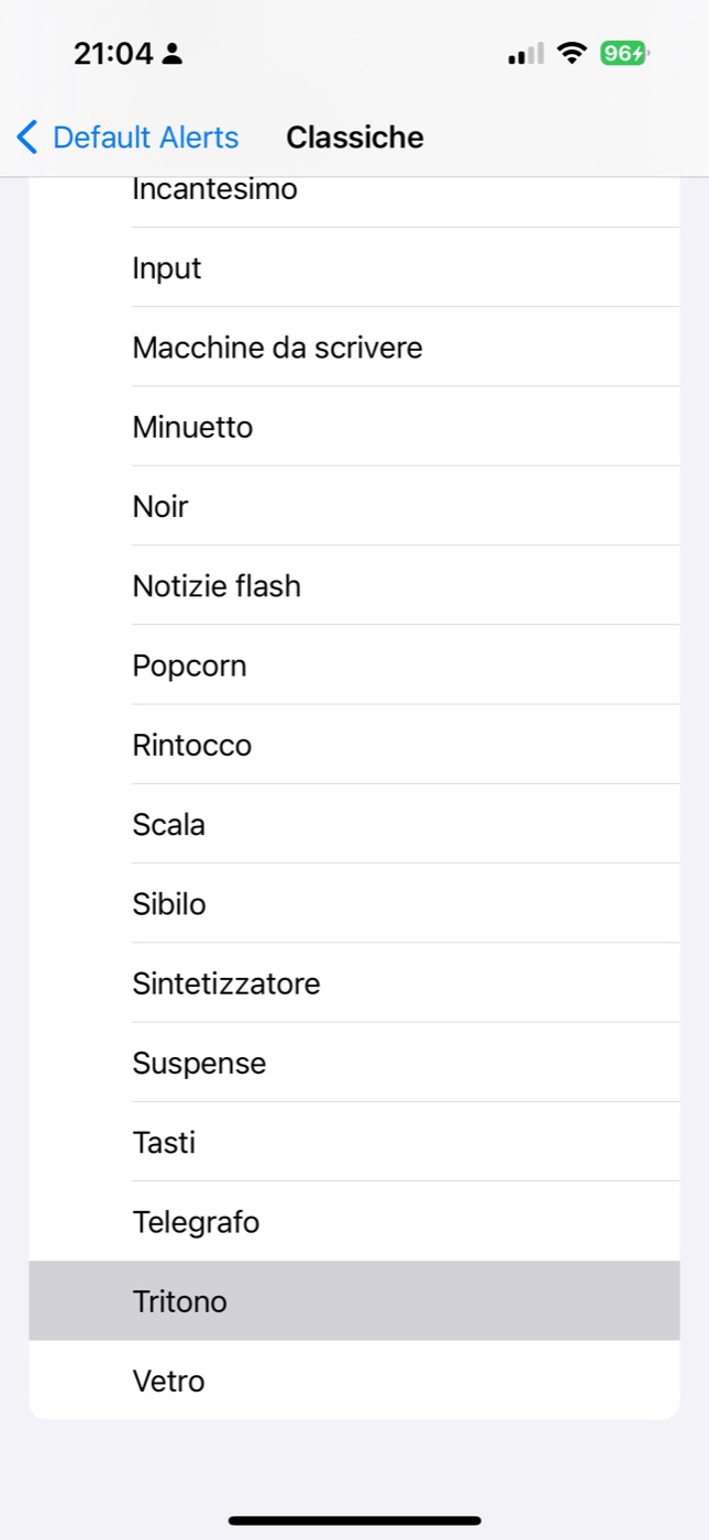 Finalmente gli utenti possono scegliere un nuovo suono per gli avvisi e chi desiderasse impostare nuovamente quello precedente per le Notifiche Push, dovrà scorrere l’elenco fino alla fine, entrare nella sezione “Classiche” e trovare Tritono.