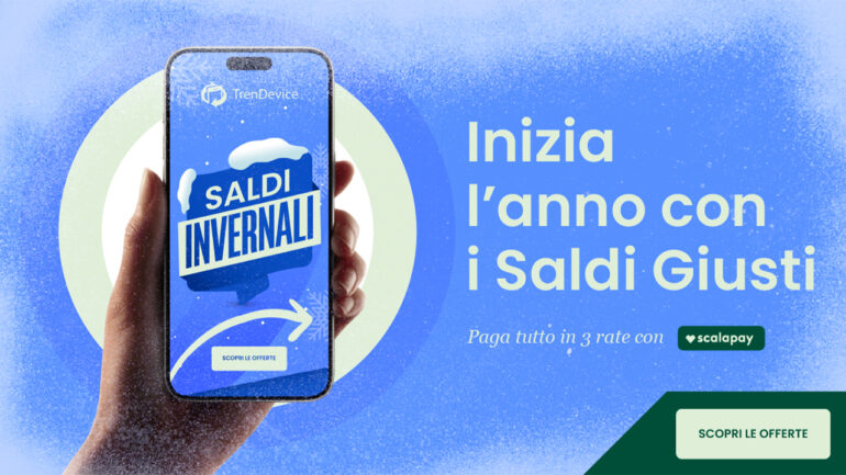 Visitate subito la pagina dedicata ai Saldi Invernali per scoprire più nel dettaglio tutte le offerte disponibili. Vi ricordiamo che su TrenDevice è possibile acquistare anche in 3 comode rate mensili senza interessi con Scalapay.