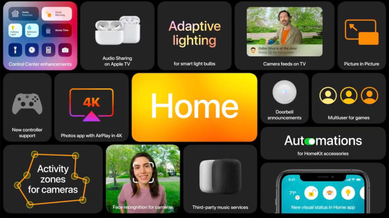 L’HomePod del 2018 di Apple utilizzava una versione modificata di iOS 11 al momento del lancio, ma la società passò a utilizzare la piattaforma tvOS per lo smart speaker con il rilascio di HomePod Software 13.4. Nell’ambito del suo impegno nello sviluppo di una presenza più ampia nella domotica, la società potrebbe alla fine combinare il software tvOS e HomePod in futuro, rinominandolo eventualmente homeOS.