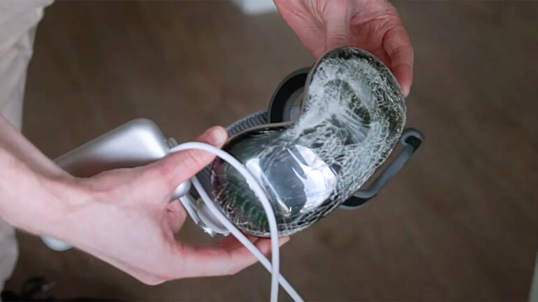 In scenari di normale usura, come urtare un muro o un mobile mentre si cammina in casa con il visore indossato, il vetro anteriore del Vision Pro si graffia ma non subisce danni gravi. In realtà, le casse smettono di funzionare prima che il vetro si rompa. Tuttavia, sì, lasciarlo cadere dalla testa manderà probabilmente in frantumi il vetro anteriore. Tuttavia, incredibilmente il dispositivo rimane per lo più funzionale.