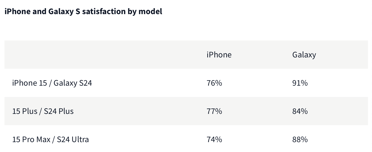 Nei confronti tra gli ultimi modelli di iPhone e la nuova serie Galaxy S24 di Samsung, sembra che l’azienda sudcoreana abbia raggiunto un traguardo significativo: una soddisfazione del cliente superiore rispetto ai dispositivi iPhone più recenti.