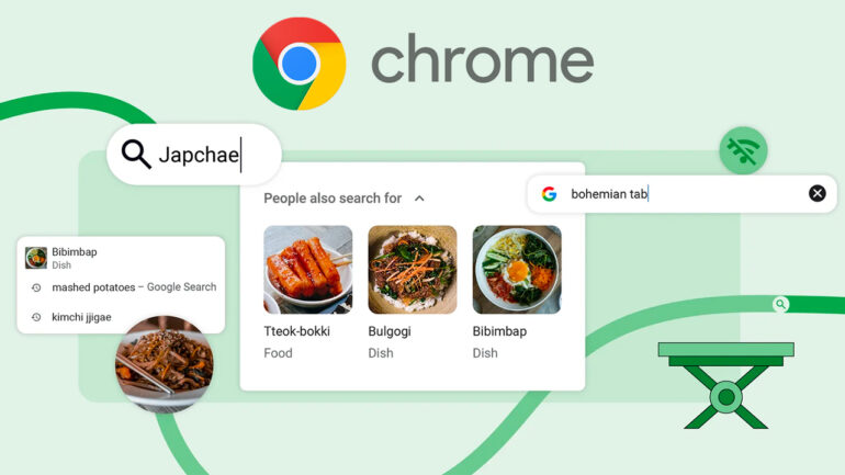 Sulla versione desktop, gli utenti registrati vedranno ora suggerimenti di ricerca potenziati quando aprono una nuova scheda. Questi suggerimenti sono personalizzati in base alle ricerche precedenti. Ad esempio, se abbiamo cercato di recente un piatto coreano come “Japchae”, potremmo ricevere consigli su altri piatti coreani popolari.