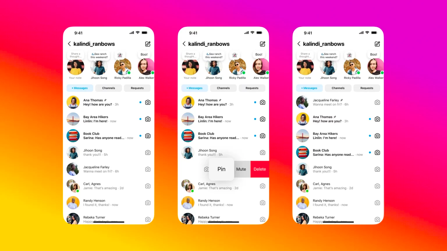 - La possibilità di fissare fino a 3 conversazioni nella parte superiore della sezione messaggi