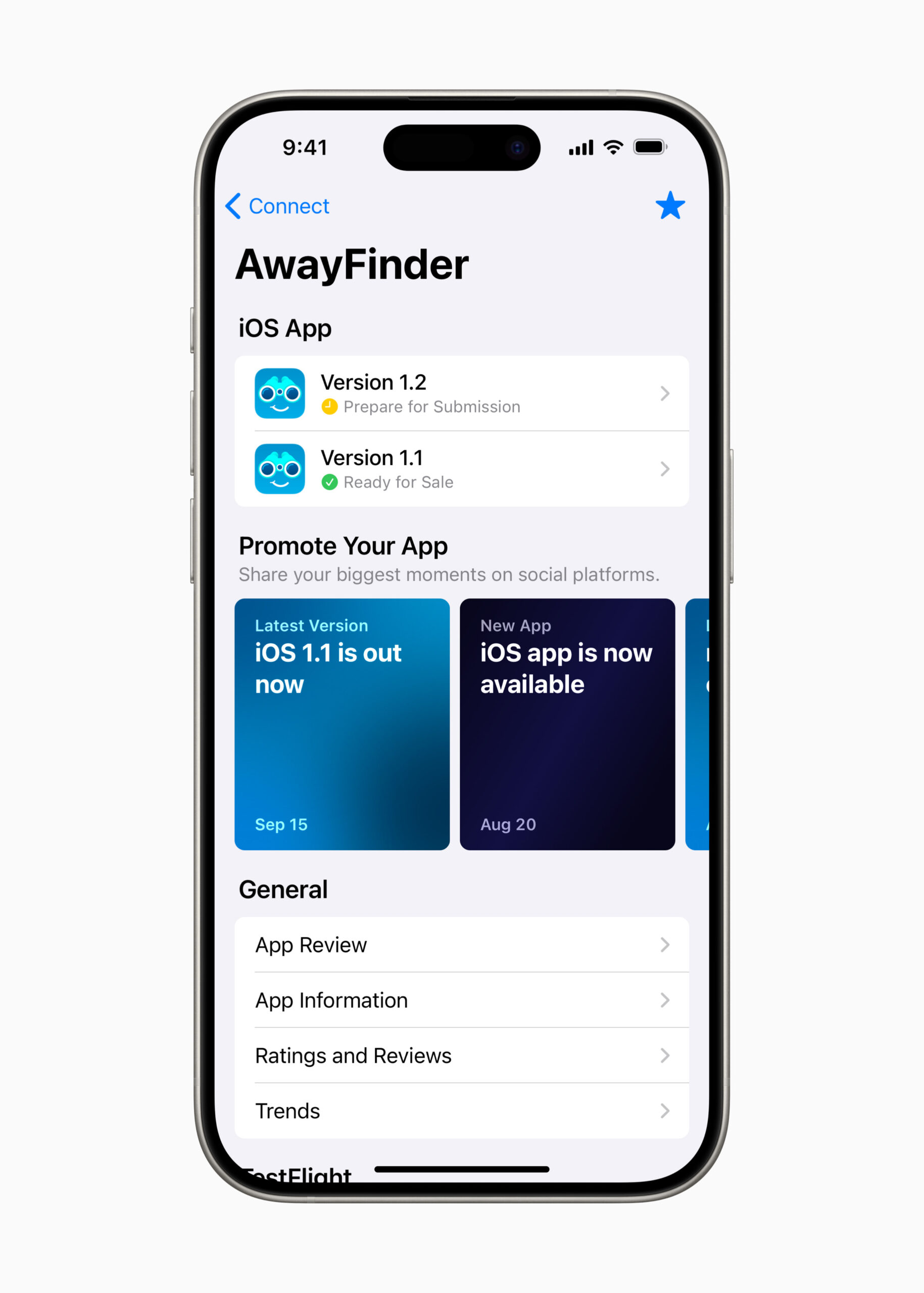 L’app App Store Connect per iOS e iPadOS ha un’interfaccia utente aggiornata e introduce un nuovo modo di promuovere i momenti speciali delle app. I developer che stanno per lanciare una nuova app oppure un nuovo aggiornamento a un’app esistente ora possono generare facilmente risorse di marketing da App Store Connect e condividerle direttamente sui loro canali social. Se un’app è stata inclusa nella classifica “App of the Day”, chi l’ha creata riceverà una notifica push da App Store Connect con un invito a creare una risorsa di marketing speciale per festeggiare l’occasione.
