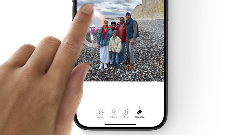 La nuova funzione Clean Up è accessibile direttamente nell’app Foto quando si modifica un’immagine. È rappresentata da un’icona a forma di gomma che appare nella barra degli strumenti in basso. Questa funzionalità sfrutta l’intelligenza artificiale e utilizza modelli di machine learning avanzati per rilevare e rimuovere distrazioni, individuare i contorni di un oggetto indesiderato e sostituirlo in modo intelligente. Inoltre, Clean Up è in grado di riconoscere anche le ombre o i riflessi di un oggetto indesiderato e di eliminarli.