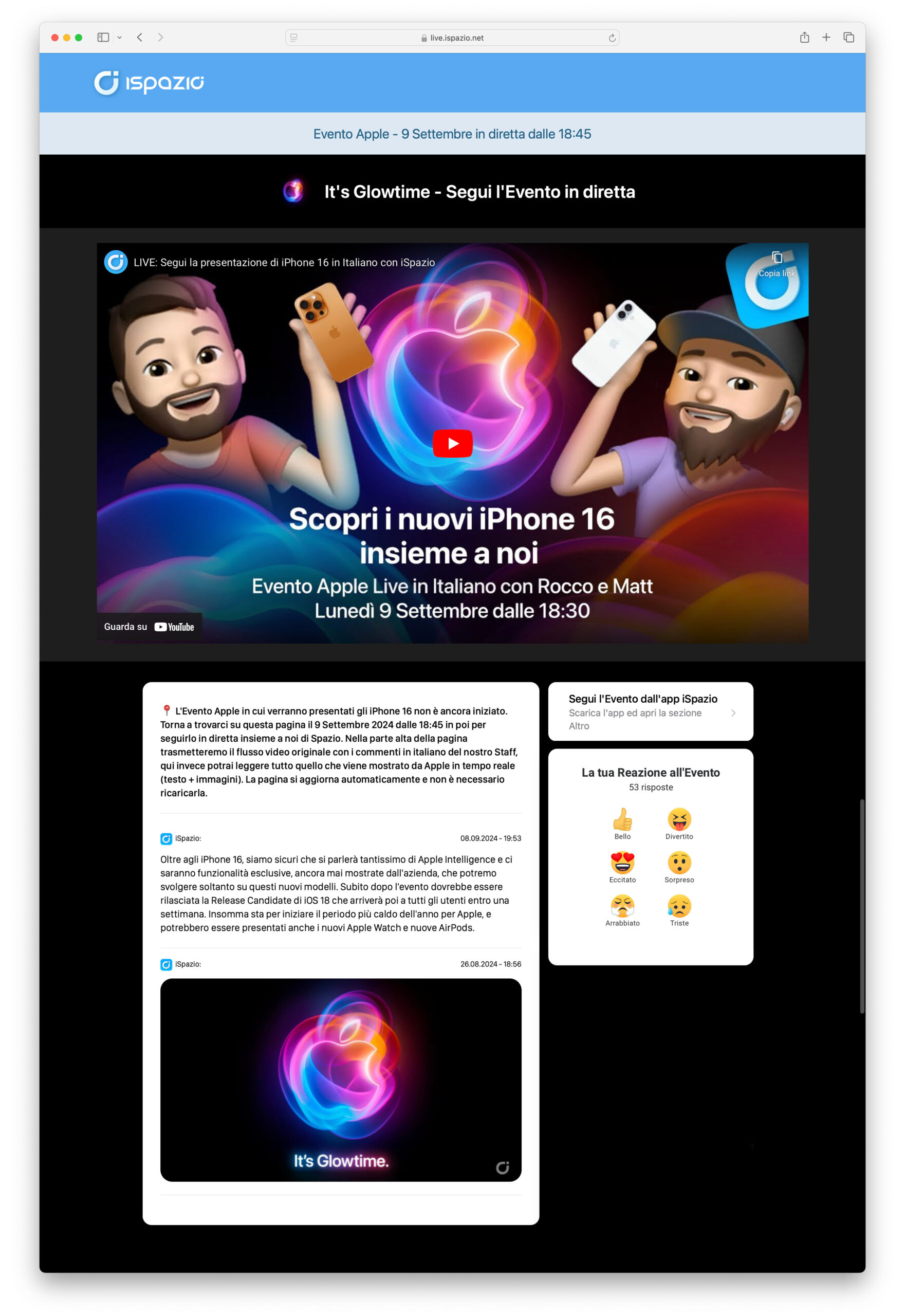Entrambi i metodi menzionati per poter seguire l’Evento Apple sono disponibili in un’unica pagina sul nostro sito dedicato