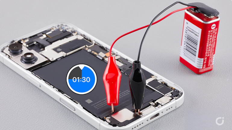 Rispetto ai modelli precedenti, gli iPhone 16 e iPhone 16 Plus sono più facili da riparare. Apple utilizza un processo di rimozione della batteria basato su elettricità, ed i passaggi per accedere e sostituire la batteria sono descritti in un documento di supporto separato. Secondo le istruzioni, basterà una batteria da 9 volt e delle clip da applicare sulla batteria dell’iPhone 16 per rimuovere l’adesivo che la fissa.
