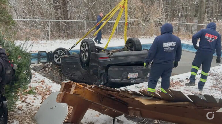 L’uomo ha avuto prima una sensazione di nausea, poi è svenuto mentre era al volante. Nel frattempo il peso del suo corpo si è spostato, premendo l’acceleratore e sfondando una recinzione dove si è capovolto ed è finito in una piscina.