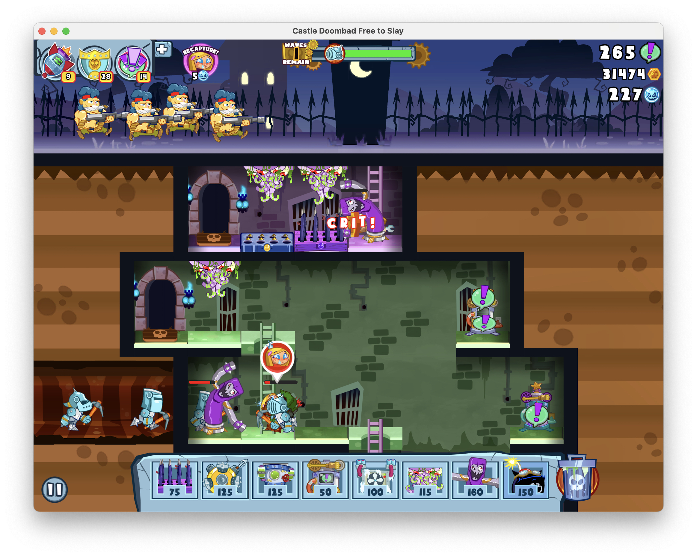 Ogni trappola ha un “costo di posizionamento” che si traduce nelle “urla” della principessa: più la faremo urlare e più trappole potremo posizionare.