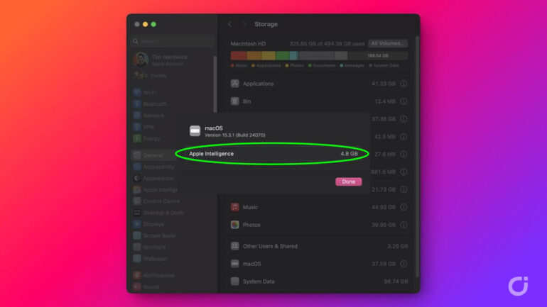 Con il rilascio della seconda beta di macOS Sequoia 15.4, Apple ha introdotto una modifica che impedisce agli utenti di vedere quanto spazio di archiviazione viene occupato dalle funzionalità di Apple Intelligence sui Mac.