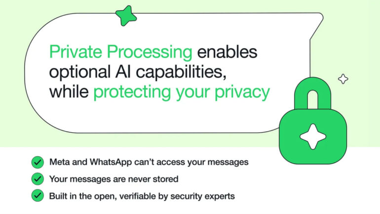 Meta ha annunciato un’importante novità per WhatsApp, ispirandosi stavolta ad Apple. Per integrare le funzionalità di intelligenza artificiale senza compromettere la privacy degli utenti, la piattaforma di messaggistica crittografata utilizzerà una tecnologia chiamata Private Processing.