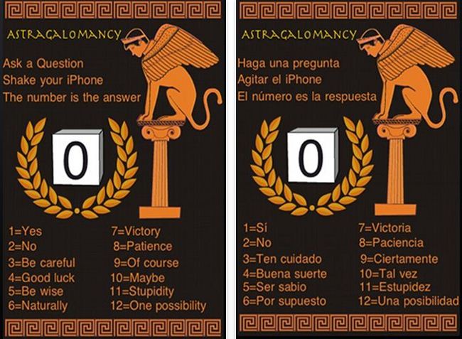 Astragalo è una nuova applicazione disponibile in Appstore. L’Astragalomanzia in latino Astragalomanteia è una antica arte di divinazione Greca e Romana eseguita lanciando i dadi.