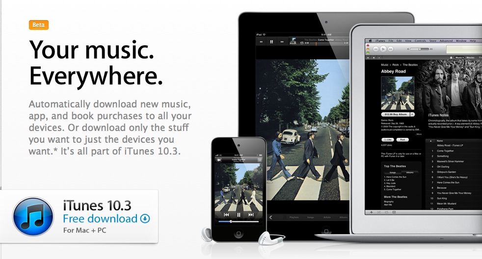 Da pochi istanti sul sito ufficiale Apple è apprsa l’immagine del nuovo iTunes 10.3 e viene riportata la possibilità di scaricare la nuova versione. Con questo aggiornamento sarà possibile utilizzare tutti quei nuovi servizi che arriveranno con iOS 5.