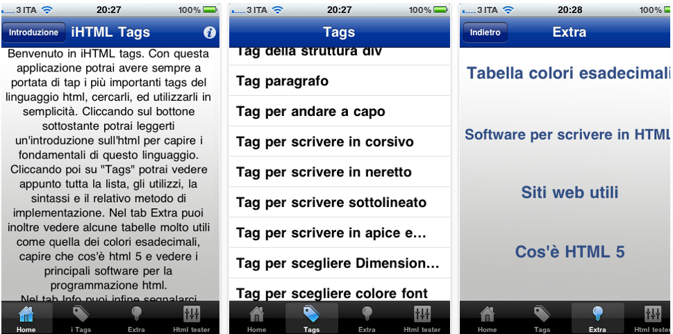 iHTML for iPhone, l’applicazione disponibile in App Store grazie alla quale potrete avere a portata di mano una gamma completa di tag html, con relativa sintassi, implementazione e campo di utilizzo, è stata aggiornata alla versione 1.2. Di seguito trovate il changelog ufficiale: