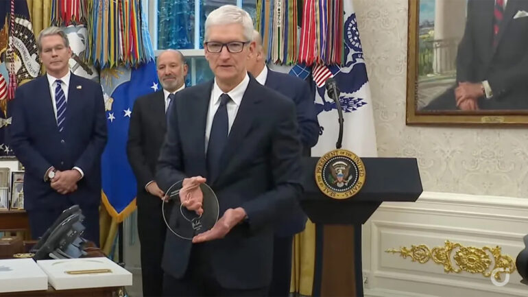 Ma non è solo Apple a essere nel mirino. Nella stessa sequenza compaiono anche Mark Zuckerberg con un Meta Quest placcato in oro, una delegazione della Florida con uno shuttle argentato e rappresentanti del Qatar con un modellino aereo di Qatar Airways interamente dorato.