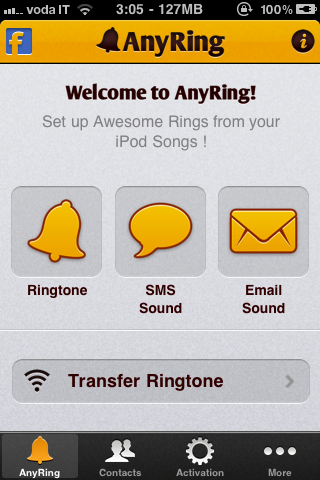 L’utilizzo dell’applicazione è davvero semplice. Dopo aver avviato AnyRing, infatti, non dovrete far altro che selezionare Ringtone, SMS Sound o Email Sound per impostare una canzone come suoneria per le chiamate, i messaggi o le e-mail.