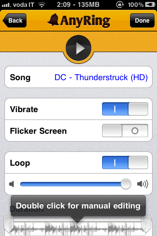 - attivare/disattivare la funzione Loop (grazie alla quale la vostra suoneria verrà riprodotta finché non risponderete alla telefonata);