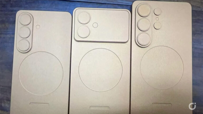 I mockup mostrano anche grandi incisioni circolari sul retro, probabili alloggiamenti per componenti di ricarica magnetica, segno che la serie Galaxy S26 sarà quasi certamente compatibile con lo standard Qi2 wireless. Quest’ultimo introduce un Magnetic Power Profile basato sul MagSafe di Apple.