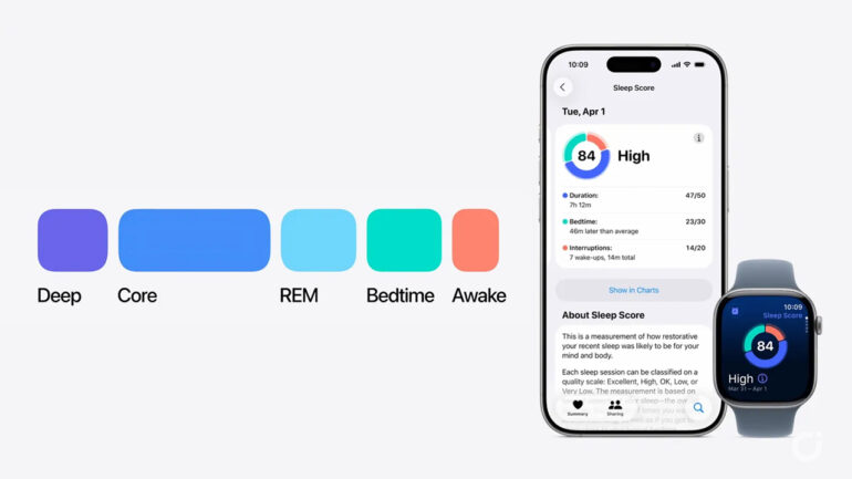 La funzione assegna un punteggio alla qualità del riposo valutando diversi parametri come la durata complessiva, la regolarità dell’orario in cui ci si corica, la frequenza dei risvegli e il tempo trascorso nelle varie fasi del sonno — profondo, core e REM. Una volta calcolato il punteggio, Apple lo suddivide in categorie e lo confronta con i dati medi dell’utente, così da evidenziare in modo chiaro dove si può migliorare.