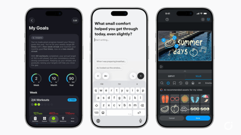 Train Fitness sfrutta il framework Foundation Models di Apple per suggerire all’utente il prossimo esercizio quando l’attrezzo necessario non è disponibile. È possibile perfezionare gli allenamenti inserendo istruzioni specifiche, per esempio i tipi di esercizi preferiti o eventuali limitazioni muscolari. Motivation, che suggerisce promemoria positivi, organizza i contenuti preferiti dell’utente in categorie tematiche ed emotive, mentre Streaks suggerisce in modo intelligente le attività negli elenchi di cose da fare classificandole in automatico. Wakeout! genera pause personalizzate in cui fare movimento e spiega in modo dettagliato perché è stato scelto un certo esercizio. Usando strutture generabili, il foundation model sceglie tra migliaia di video disponibili e crea la giusta routine per ogni utente.
