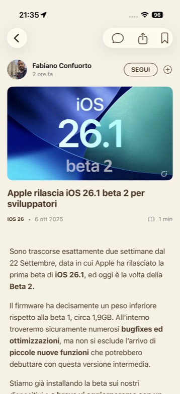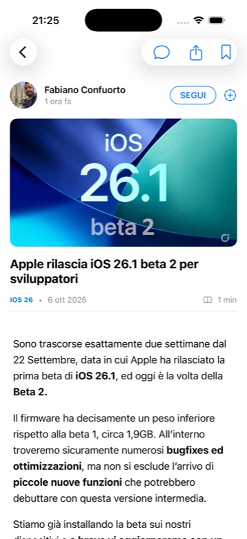 E’ un’app completamente nuova, creata aprendo un nuovo progetto in Xcode, quindi partendo proprio da zero anche se vi apparirà subito familiare perchè, a grandi linee, utilizza lo stesso aspetto grafico che adottiamo sul sito, in maniera tale da uniformare le cose. Naturalmente non manca il supporto ad iOS 26 ed al Liquid Glass.
