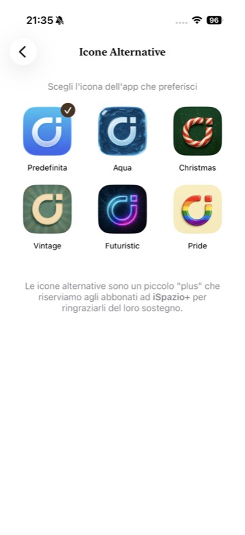 Dal momento che Apple non permette l’utilizzo degli in-app purchase senza “dare nulla in cambio” a chi acquista, ho deciso di implementare il tema “vintage” e le icone alternative soltanto per gli utenti iSpazio+ ma si tratta di due cosine davvero minime che non intaccano minimamente l’esperienza d’uso completamente gratuita dell’applicazione che garantisco a tutti.