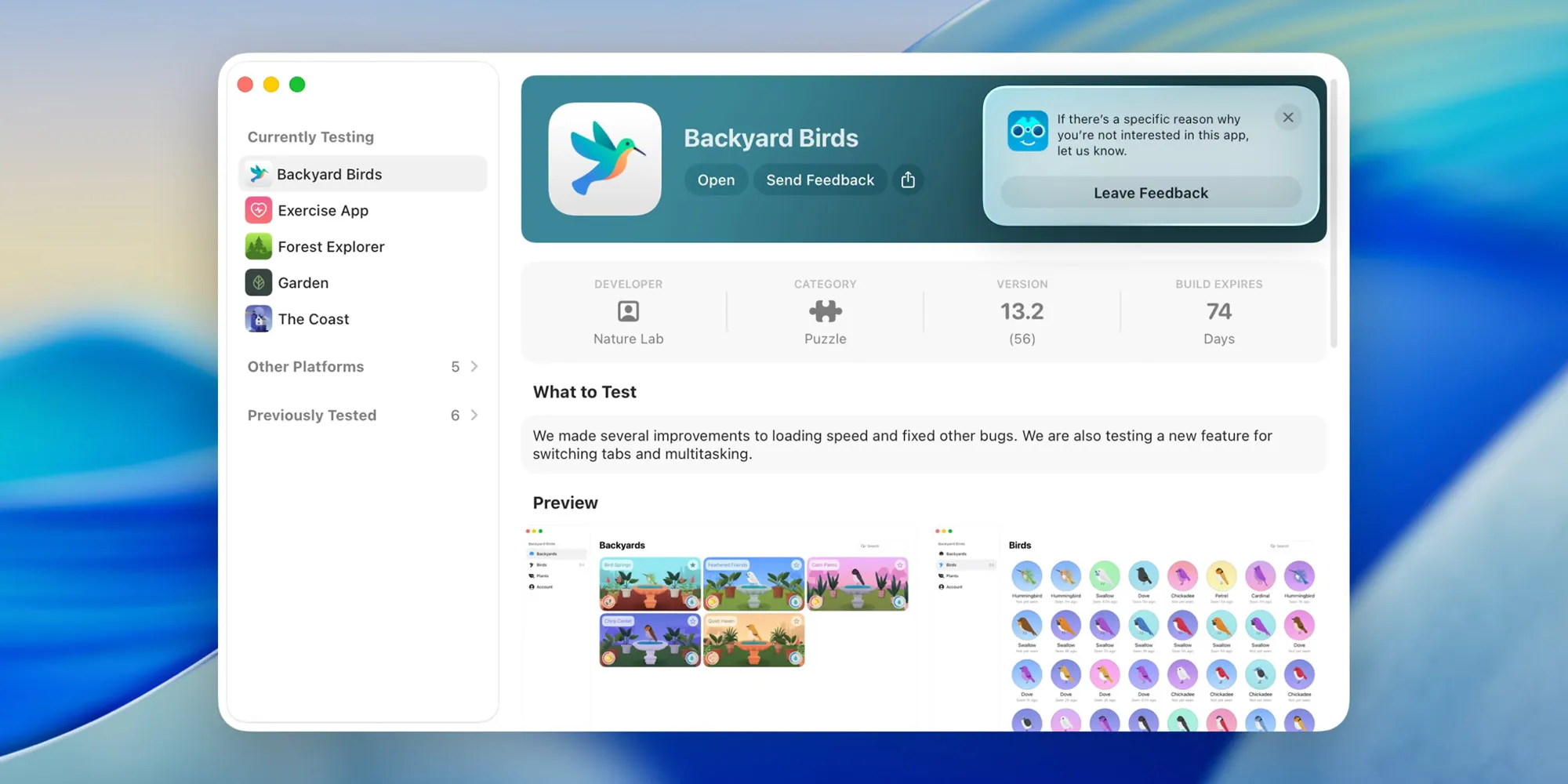 Con l’ultima versione, Apple porta anche su TestFlight il nuovo design Liquid Glass, lo stesso stile grafico che sta gradualmente arrivando su diverse app di sistema con iOS 26.