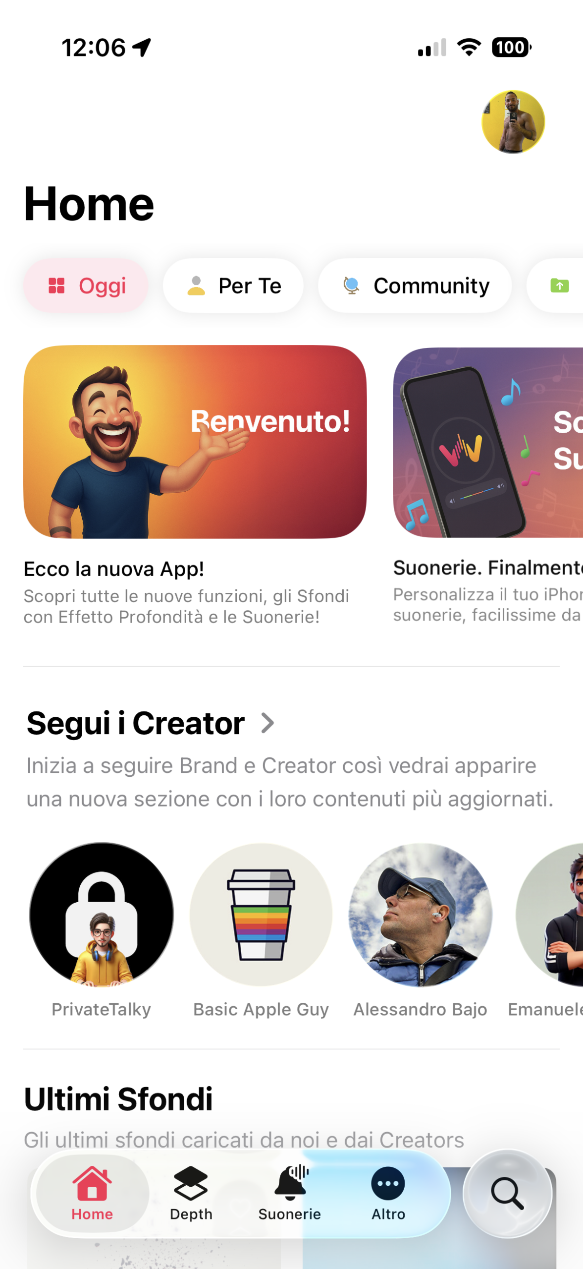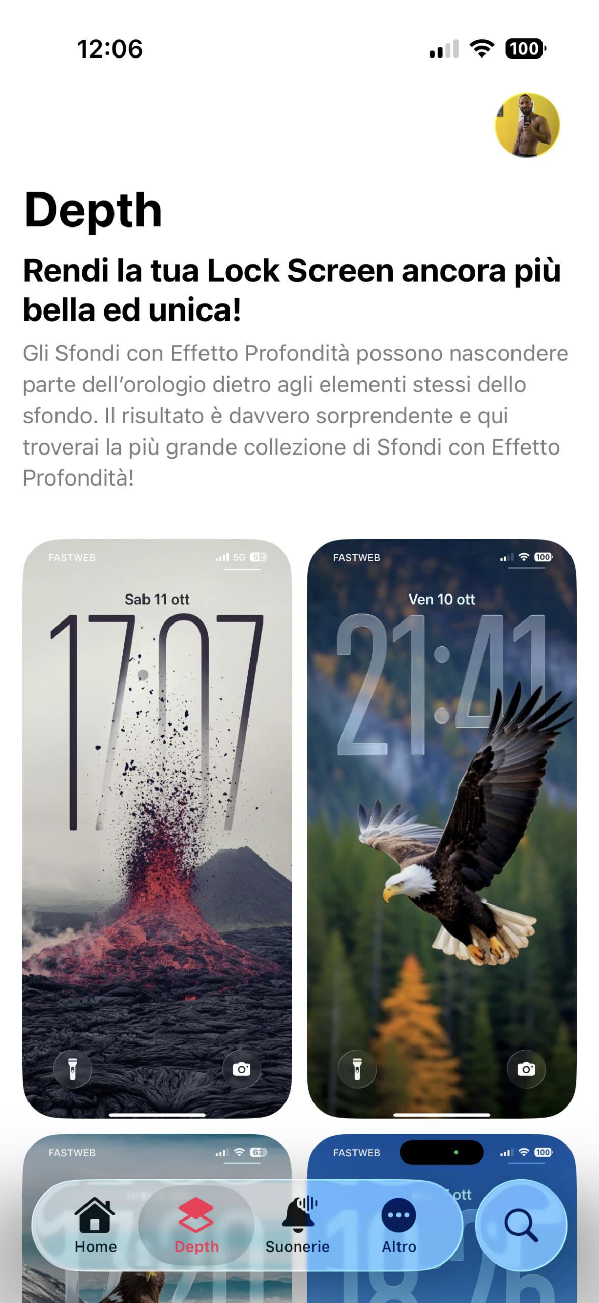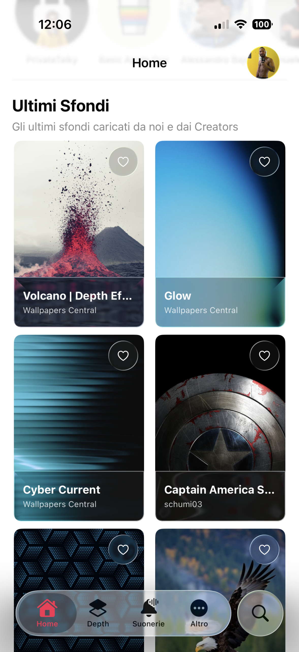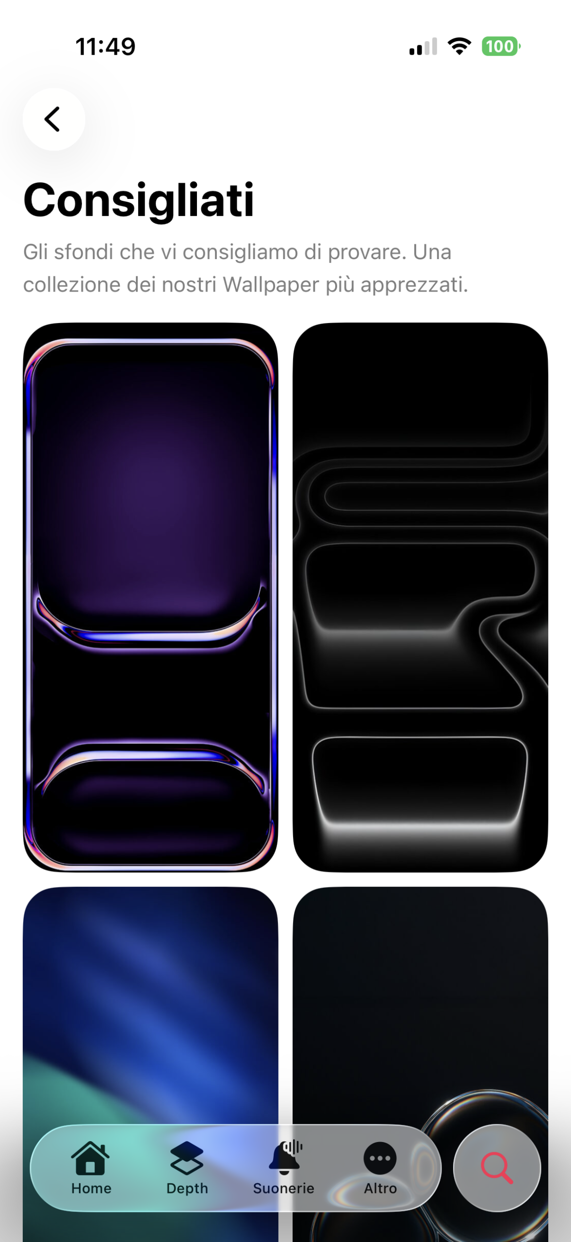- Ricostruite tutte le pagine in cui vengono mostrati gli Sfondi in una lista scorrevole verticalmente (Home, Depth, Per Te, Community, Preferii, Account). L’app mostra due sfondi per riga posti su due colonne ma prima avevano una dimensione fissa che potesse andare più o meno bene per tutte le risoluzioni degli schermi di iPhone: adesso invece sono dinamiche e riescono ad adattarsi automaticamente per occupare in maniera ideale le varie dimensioni degli schermi: dai modelli Mini ai Pro Max.