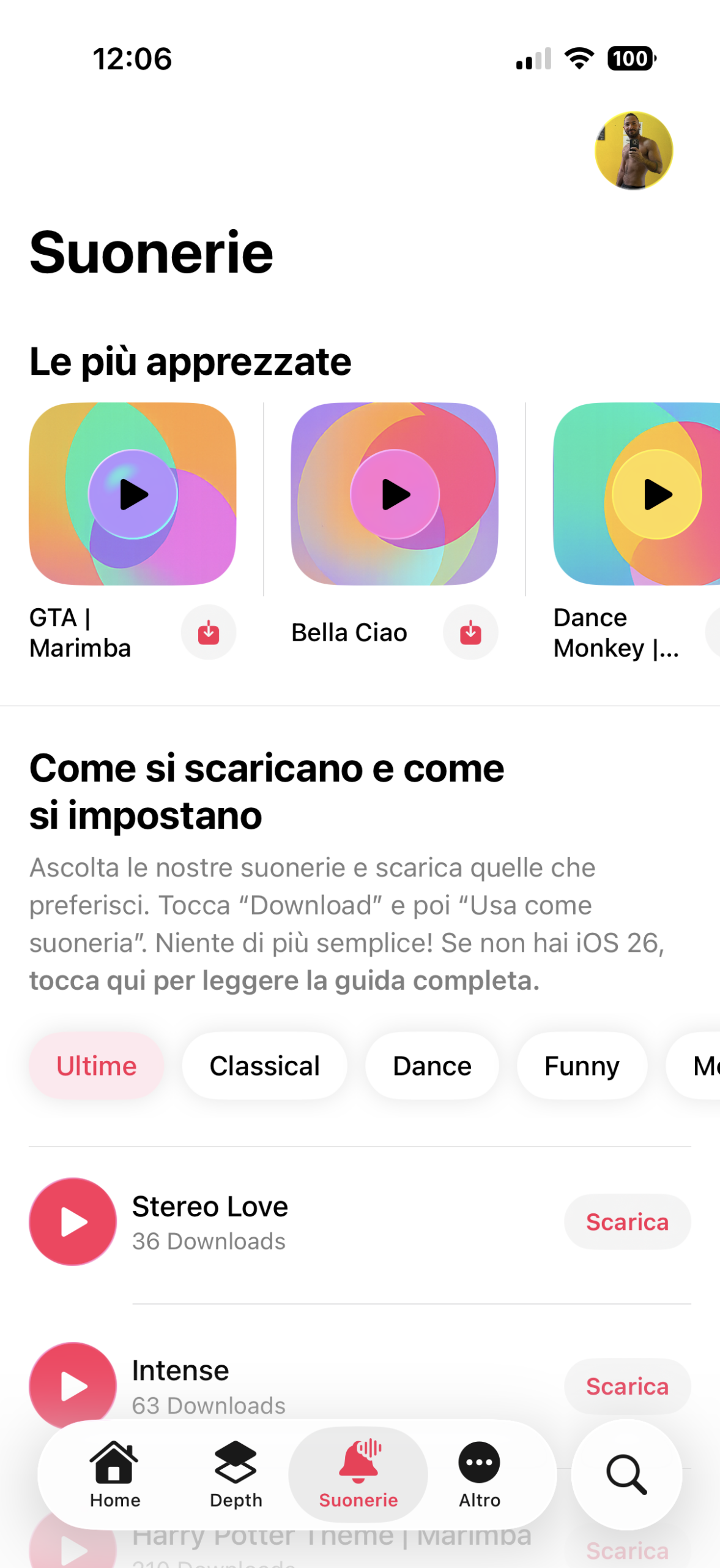 - La sezione superiore, “Suonerie più apprezzate“, che in precedenza mostrava solo le 10 Suonerie più scaricate, adesso va anche oltre e ne carica altre 10 man mano che scorrete la sezione in orizzontale.
