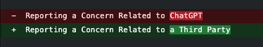 Nel codice troviamo delle differenze: dove prima veniva esplicitamente menzionato ChatGPT adesso compare “terze parti” questo ci lascia capire che presto il sistema ci permetterà di utilizzare diverse AI oltre a ChatGPT.