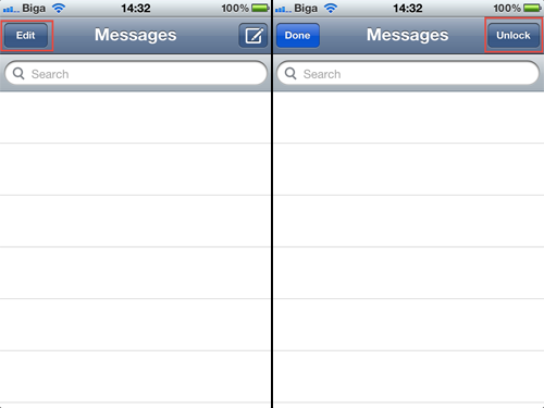Molti di voi si saranno sicuramente trovati, almeno una volta nella propria vita, nella situazione in cui durante la lettura di SMS particolarmente privati, vi erano degli occhi indiscreti ad osservarvi. Il Tweak di Filippo, è proprio quello che fa per voi in questi casi! Grazie a questa semplice utility potrete, infatti, nascondere completamente tutti gli SMS all’apertura dell’applicazione dei Messaggi, così da essere sicuri che nessuno possa vederne il contenuto. Per attivare o disattivare quest’impostazione sarà semplicemente necessario premere il tasto “Edit” e poi “Unlock” o “Lock” in base alle vostre necessità.