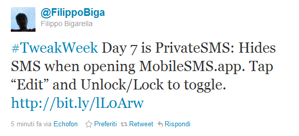 La prima settimana è stato lo stesso Petrich a rilasciare i propri tweak, ma ora che siamo giunti alla seconda settimana tocca al nostro Filippo Bigarella rilasciare le sue creazioni ed oggi vi presentiamo il suo settimo ed ultimo tweak: PrivateSMS.
