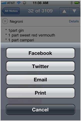 - aggiunta la possibilità di condividere le note su Twitter e Facebook. Per condividere una nota non dovrete far altro che aprirla ed effettuare un tap sull’apposita icona per la condivisione;