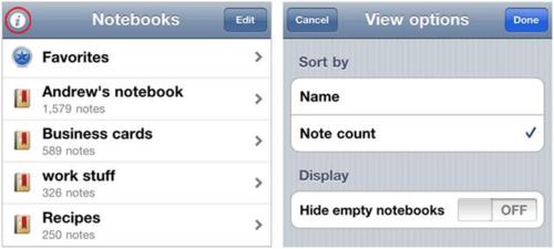 - aggiunte nuove opzioni relative all’ordinamento di taccuini e tag. Potrete, infatti, scegliere di avere le vostre liste in ordine alfabetico o di ordinarle attraverso il conteggio note. Potrete anche decidere di non visualizzare i taccuini e i tag che non hanno note associate, rendendo così le vostre liste più gestibili;