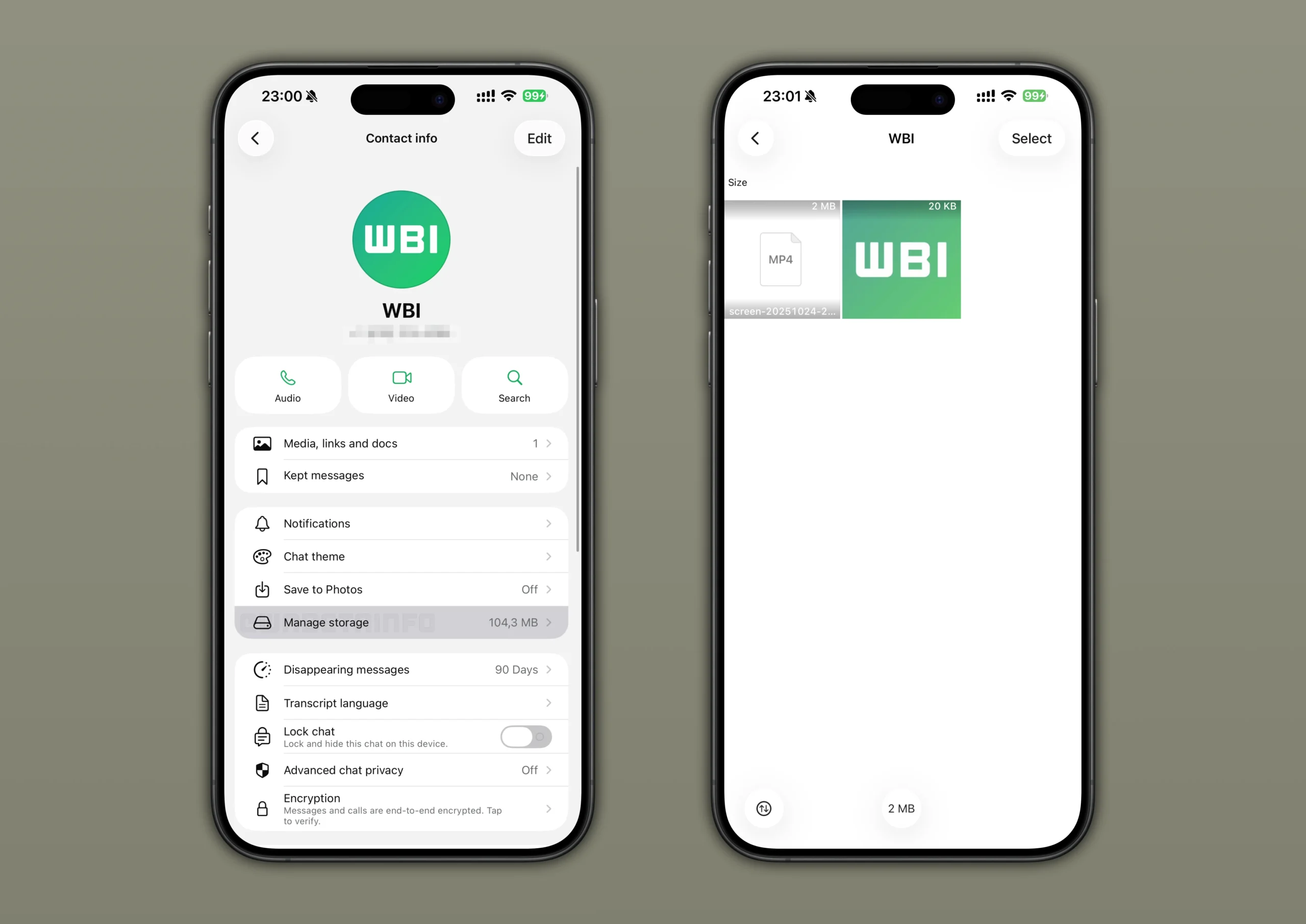 Come segnalato da WABetaInfo, nell’ultima versione beta di WhatsApp per iOS (disponibile su TestFlight) è comparsa una nuova opzione “Gestisci spazio” direttamente nella schermata info chat.