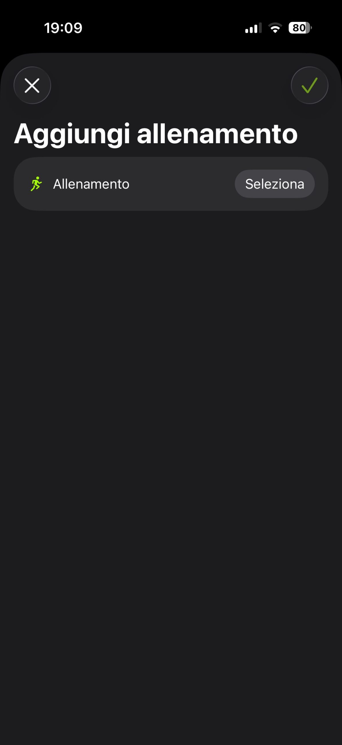 All’interno dell’app Fitness, basta aprire la scheda Allenamenti e toccare l’icona “+” in alto a destra per aggiungere un nuovo allenamento manuale.