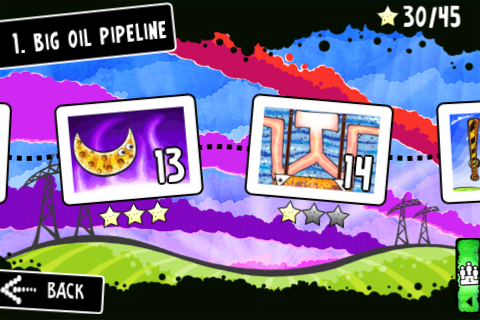 In ogni quadro avremo una tubatura aperta che, in seguito ad un nostro tocco, inizierà a riversare litri di petrolio che dovremo dirigere nell’apposito bacino segnalato da una linea tratteggiata ed un numero che ci mostrerà la quantità necessaria per completare il quadro. Avanzando progressivamente si presenteranno ostacoli sempre differenti tra cui bottoni da attivare e sbarre da sollevare. Il nostro inventario conterrà inizialmente travi a cui si aggiungeranno via via altri oggetti che aumenteranno la complessità della partita.