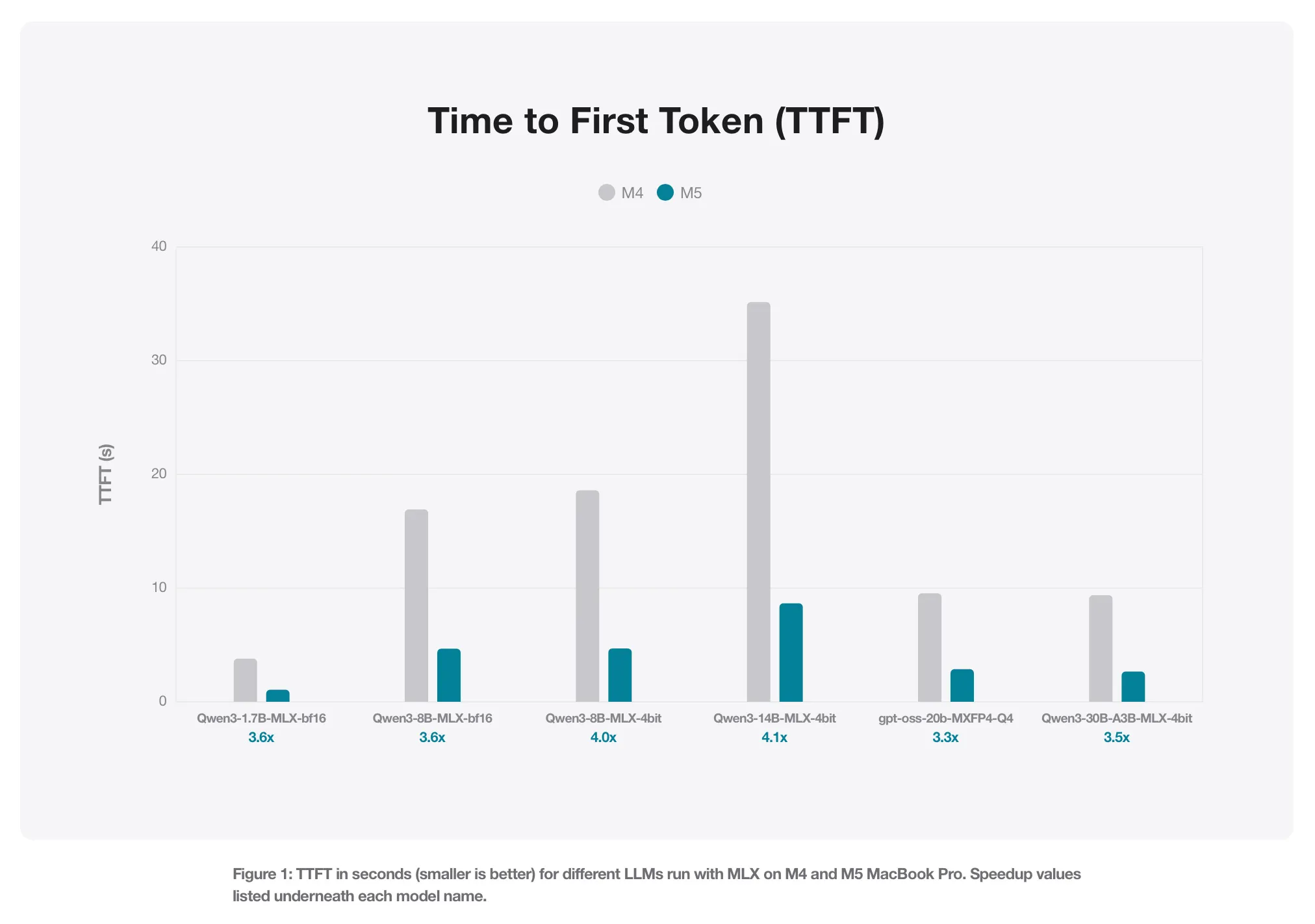 In questi anni, Apple si è gradualmente avvicinata all’esecuzione locale dell’intelligenza artificiale generativa, sfruttando al massimo la propria architettura hardware. Coerentemente con questo percorso, l’ultimo post pubblicato sul blog Machine Learning Research svela quanto è più veloce il nuovo chip M5 rispetto all’M4 quando deve gestire un LLM in locale.