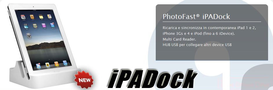 E’ disponibile un interessante assortimento di custodie, cover posteriori trasparenti e colorate complementari alla Smart Cover per iPad 2, cavetti, alimentatori, ed altri accessori. Nell’offerta rientra anche iPadock, la super base di appoggio in grado di ospitare 2 iPad oppure un iPad e un iPhone e un iPod touch in contemporanea.