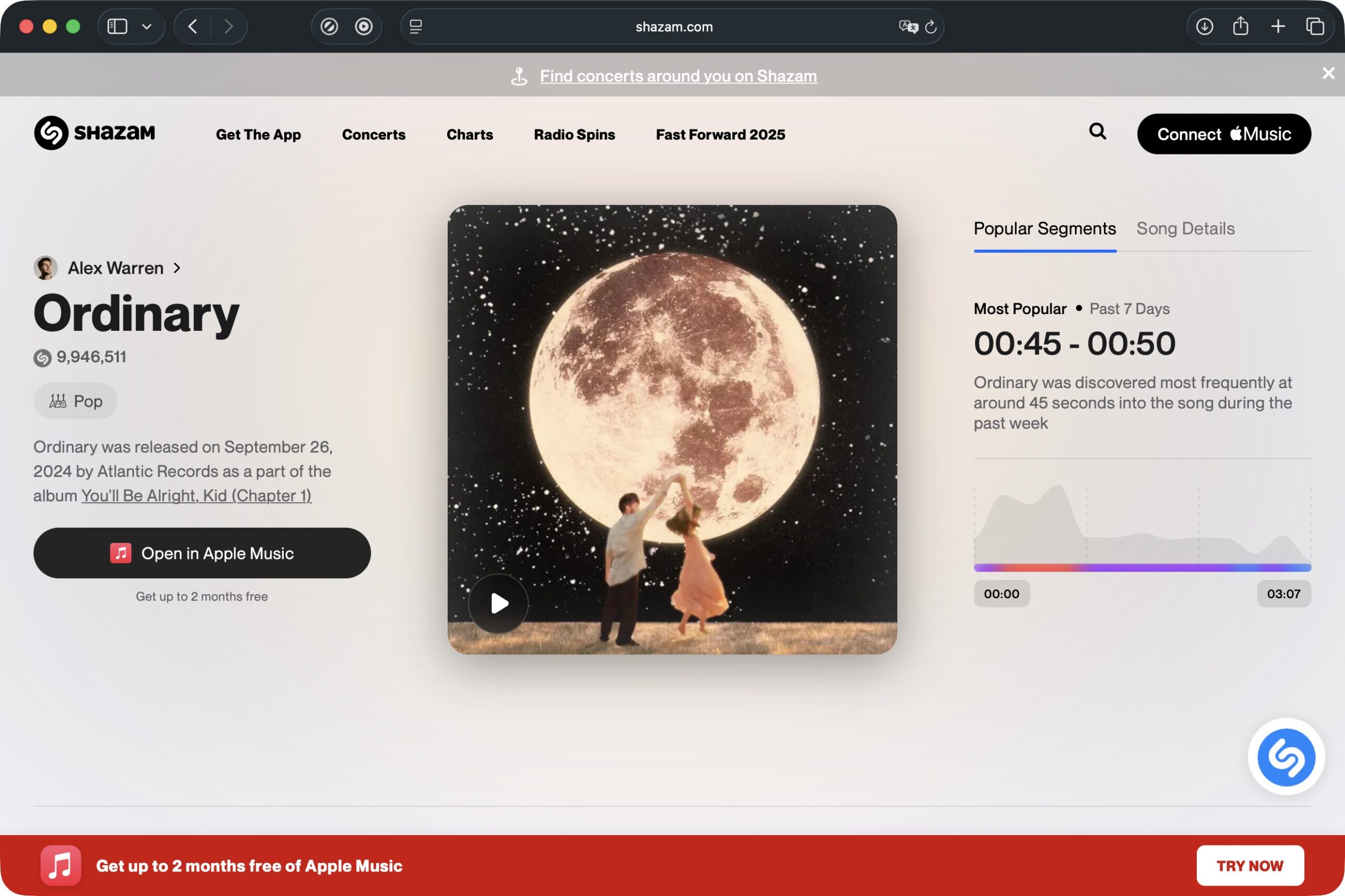 Segmenti popolari si basa sull’attività registrata nell’ultima settimana e mette in primo piano i passaggi che hanno generato il maggior numero di Shazam. Su desktop e mobile, direttamente da Shazam.com, appare un grafico interattivo che rappresenta l’andamento della popolarità dei vari segmenti.
