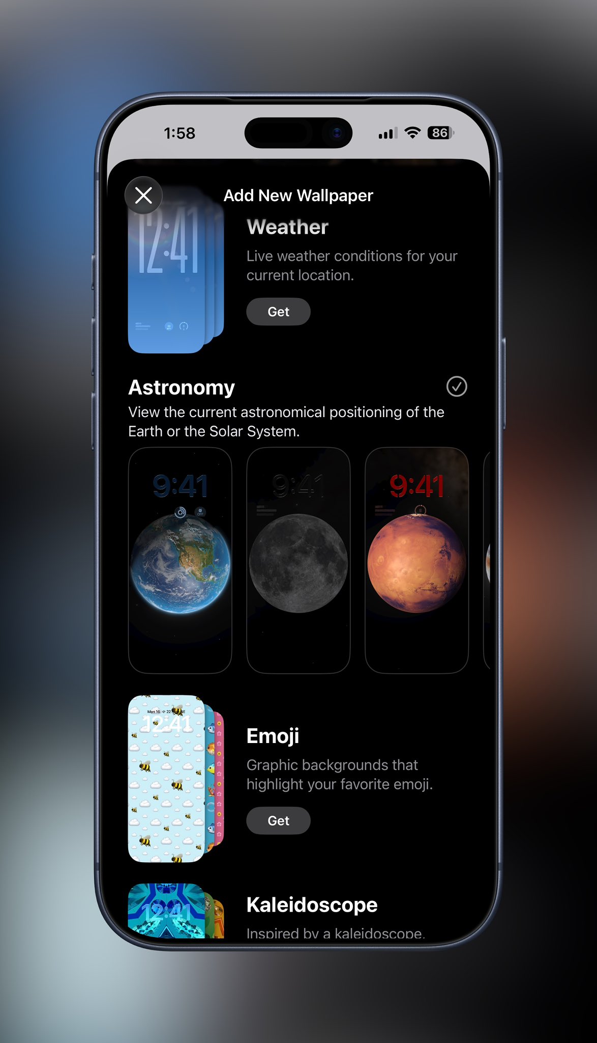 Apple ridisegna la galleria degli sfondi, introducendo categorie in alto, sezioni foto più chiare e una gestione delle raccolte più ordinata.