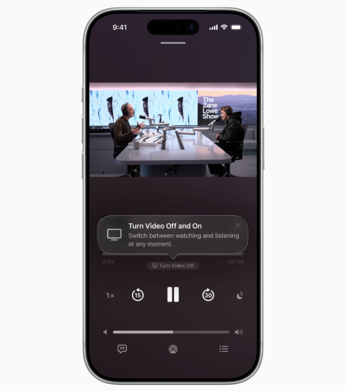 Una delle evoluzioni più interessanti riguarda l’app Podcast. Apple introduce un’esperienza video avanzata basata su tecnologia HLS, il proprio sistema di streaming adattivo.