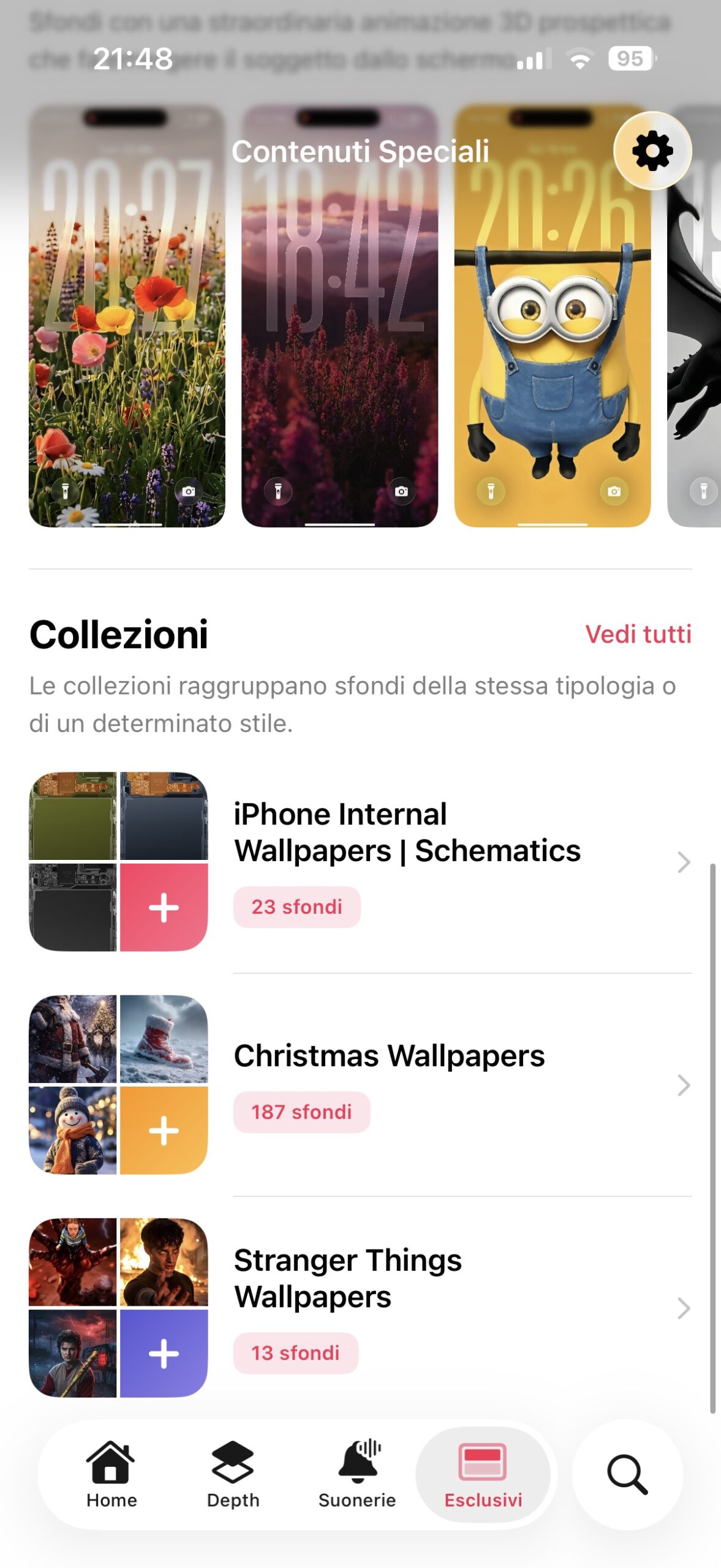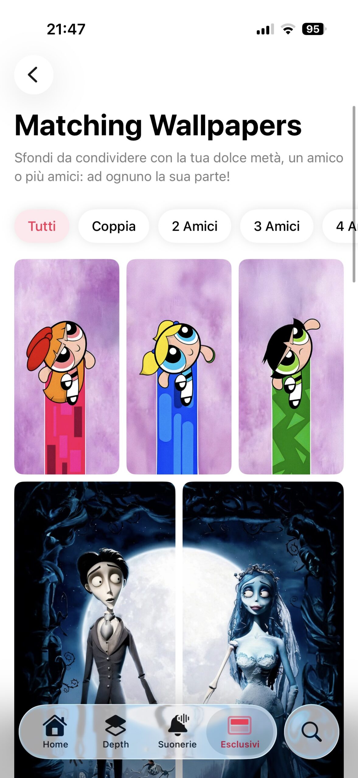 Il quarto tab dell’app è del tutto nuovo ed inedito. Al suo interno trovate l’accesso rapido proprio ai LIVE Wallpapers, ai Matching Wallpapers, gli Sfondi 3D con effetto Scena Spaziale e le Collezioni.