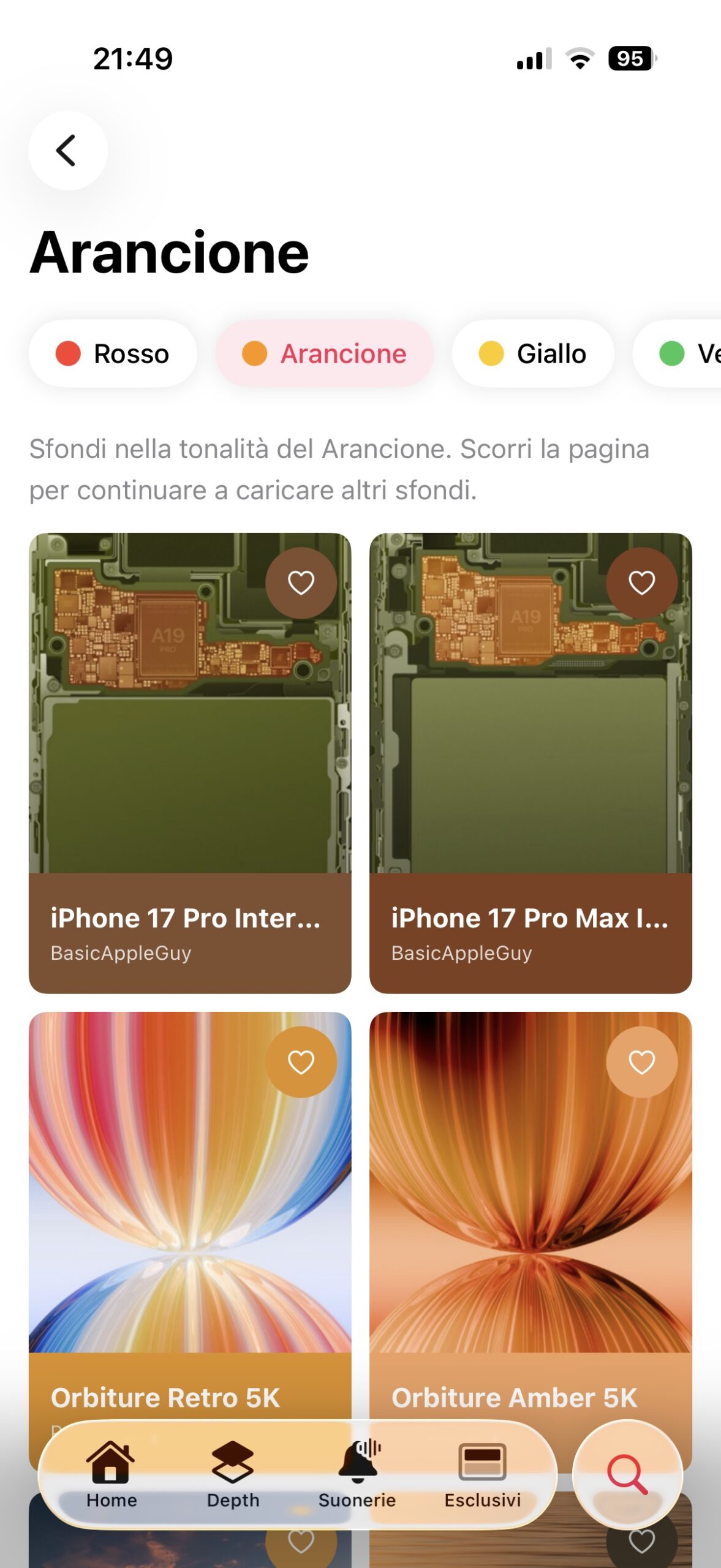 Viene introdotta per la prima volta e ancora in fase Beta la ricerca degli sfondi per colore. Se sapete già che volete matchare uno sfondo al vostro iPhone arancione, potrete toccare il colore arancione e troverete tanti sfondi idonei.