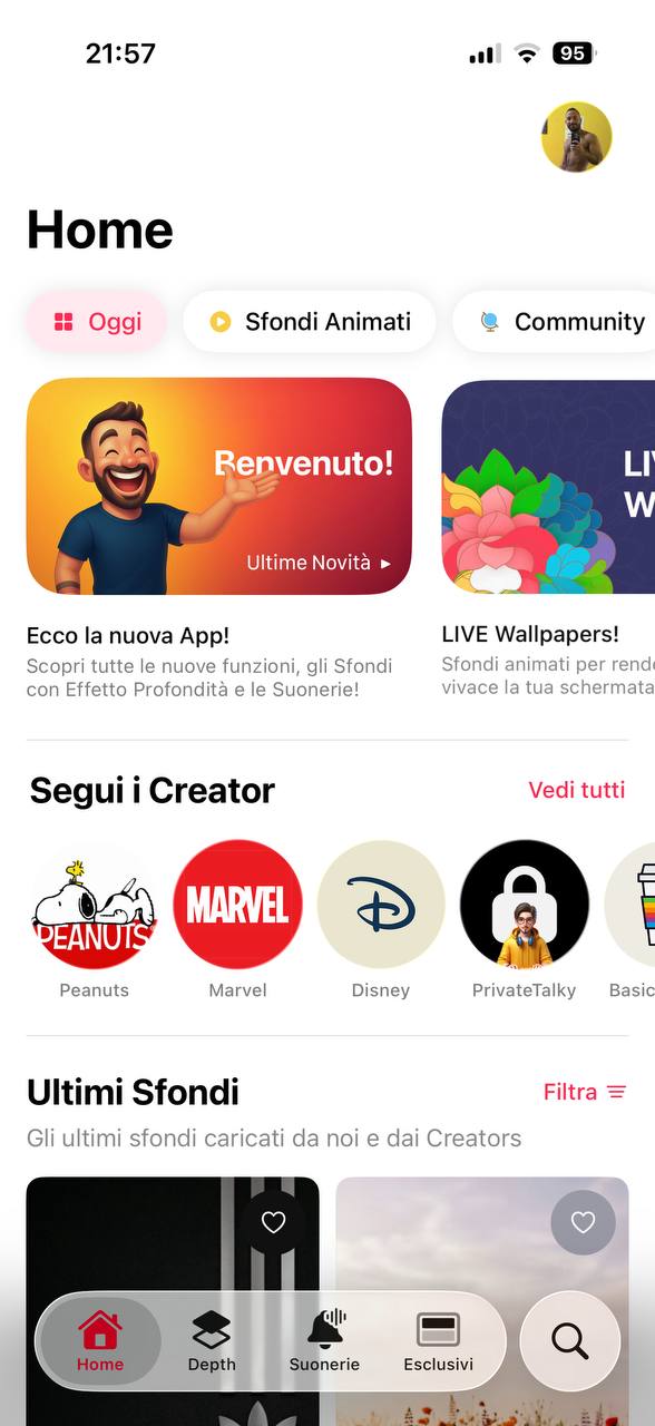 - Ogni volta che l’applicazione torna in primo piano dal background, non sarà più necessario refreshare la home per visualizzare i nuovi sfondi pubblicati: l’aggiornamento avverrà automaticamente e comparirà anche un badge “NEW” sugli sfondi più nuovi.